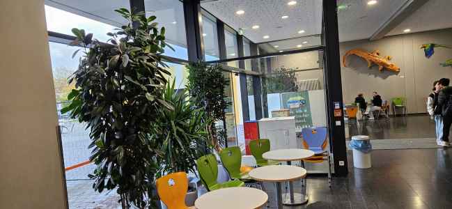 - Alle Räume der Verwaltung sind im Verwaltungscluster des Gebäudeteil C untergebracht. Für Elterngespräche gibt es drei Besprechungsräume.