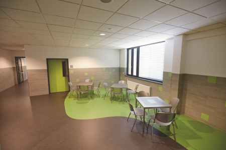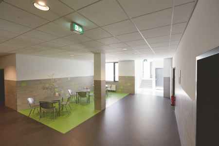 - Im Erdgeschoss des Gebäudeteils C sind die Ganztagsräume zusammengefasst: Spieleraum, Ruheraum, Aufenthaltsraum, Bibliothek.