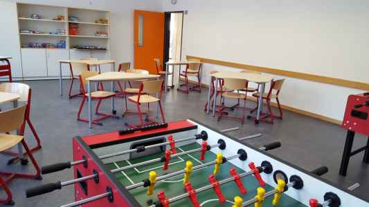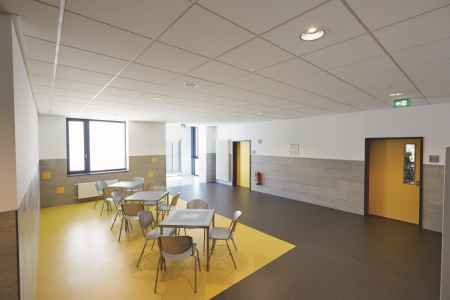 - Im Erdgeschoss des Gebäudeteils C sind die Ganztagsräume zusammengefasst: Spieleraum, Ruheraum, Aufenthaltsraum, Bibliothek.