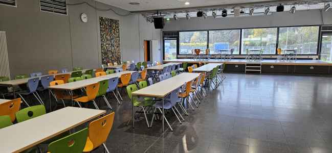 - Das Forum beinhaltet die Mensa und das Café. Im Forum können sich Schülerinnen und Schüler in Pausen oder Freistunden aufhalten. Ebenso können dort Veranstaltungen durchgeführt werden.