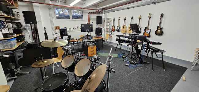 - Weitere Fachräume gibt es für die Fächer Musik und Kunst.