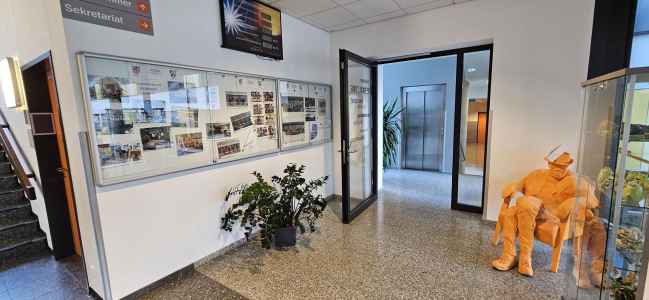 - Alle Räume der Verwaltung sind im Verwaltungscluster des Gebäudeteil C untergebracht. Für Elterngespräche gibt es drei Besprechungsräume.